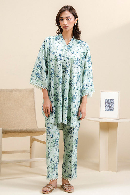 MINT FROST-2 PC PRNTED LINEN SUIT