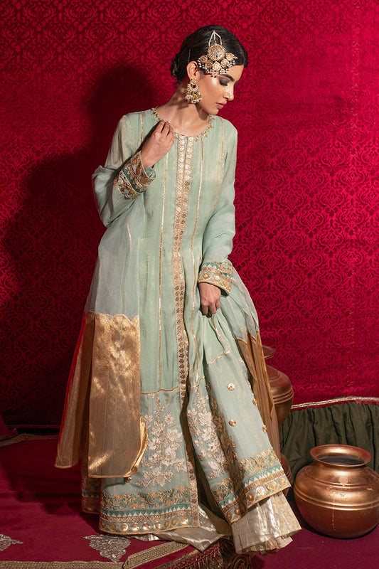 MINTED SAGE-4 PIECE EMBROIDERED ORGANZA SUIT