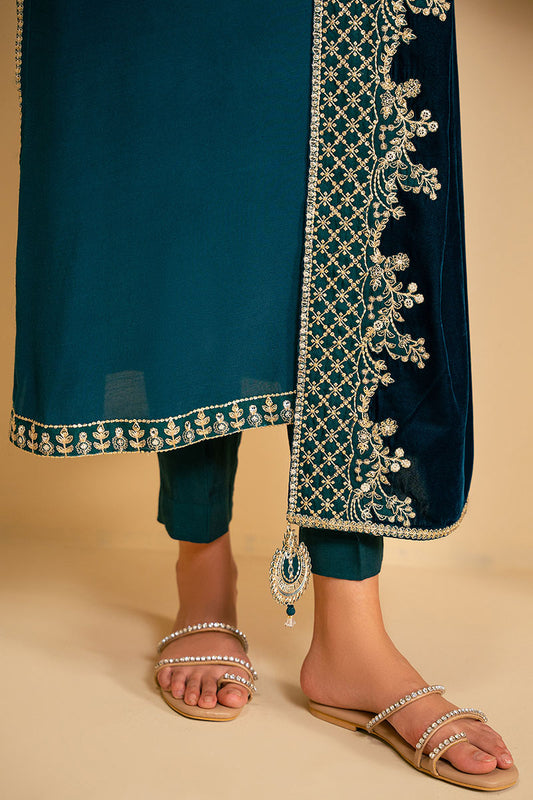 MYSTIC TEAL-3PC (SHIRT, TROUSER & DUPATTA)