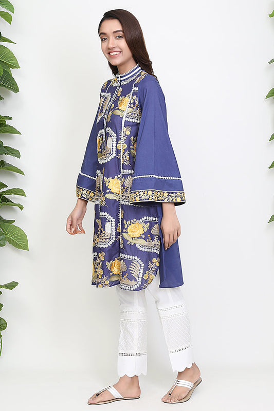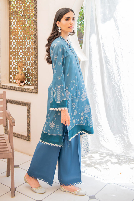 MYSTIC BLUE-2 PC PRINTED LINEN SUIT
