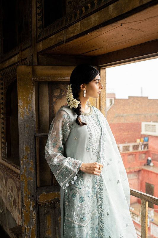 MUTED BLUE-4 PIECE EMBROIDERED CHIFFON SUIT