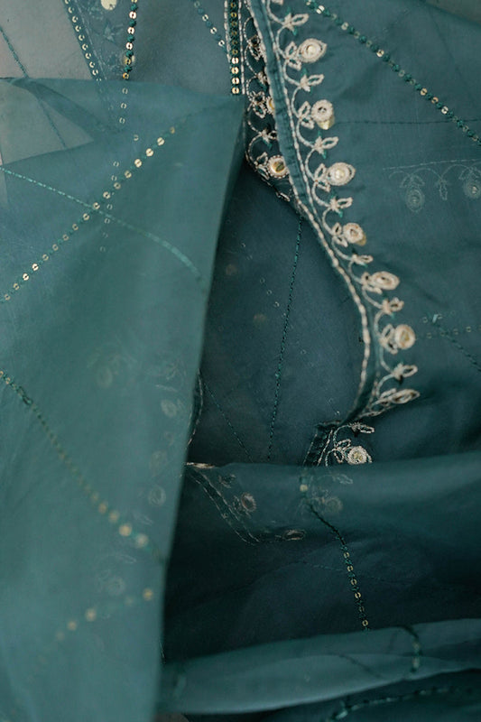 OPAL GLOW-4 PIECE EMBROIDERED ORGANZA SUIT
