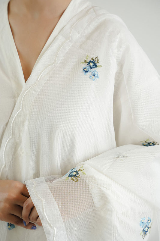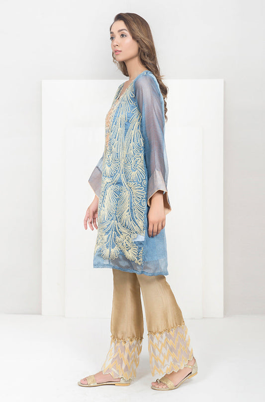 PAVOT BLUE EMBROIDERED SHIRT - 3PC (SHAWL)