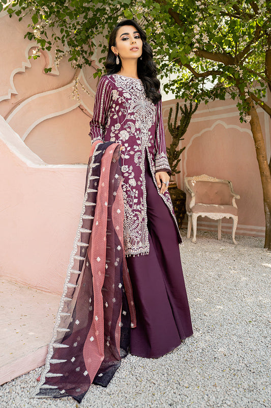 PETAL PURPLE-3PC EMBROIDERED SILK SUIT