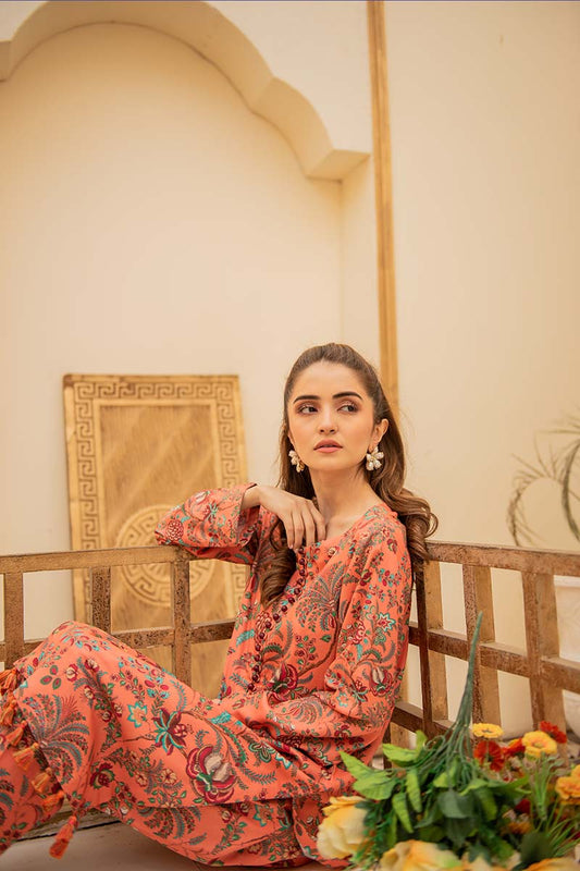 PEACH DUST-2 PC PRINTED LAWN SUIT