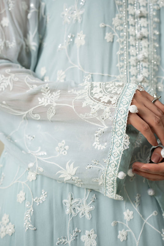 AQUAMARINE AZURE-4PC ORGANZA EMBROIDERED SUIT