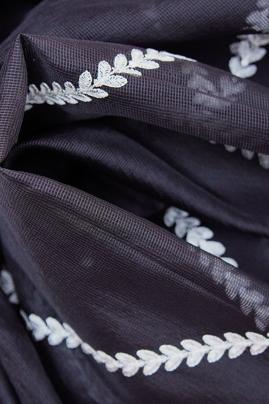 ASH GRAY-4PC ORGANZA EMBROIDERED SUIT