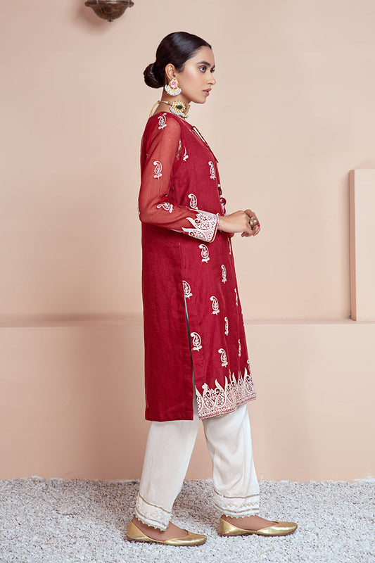 RIO RED EMBROIDERED ORGANZA SHIRT