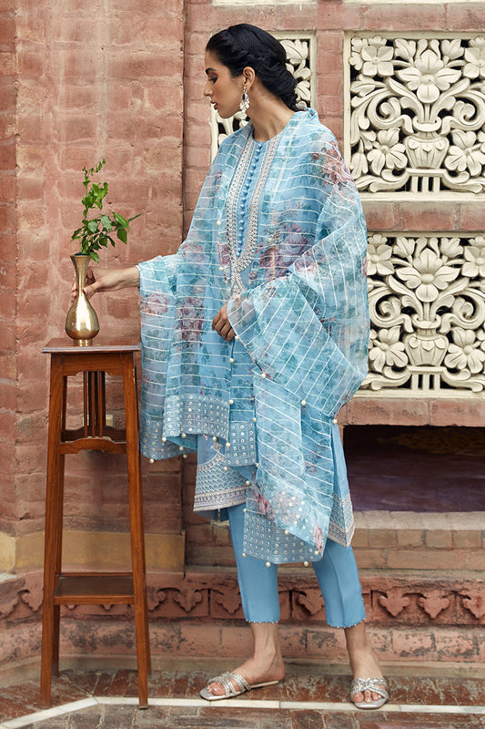 SERENITY BLUE-3PC (SHIRT , TROUSER & DUPATTA)