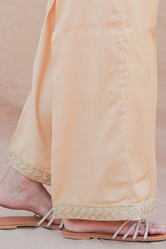 TANGERINE GLOW-3PC SATIN EMBROIDERED SUIT
