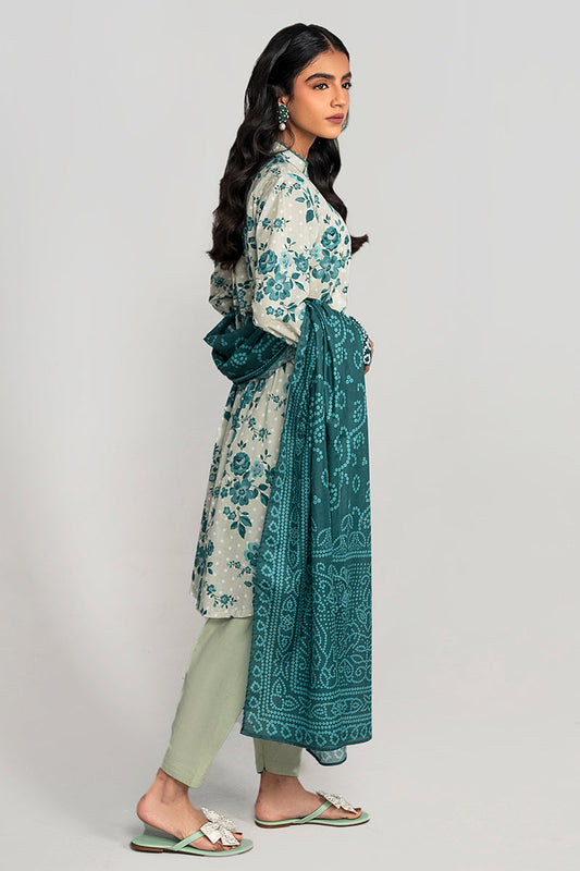 TEAL DEW-3 PC PRINTED LAWN SUIT