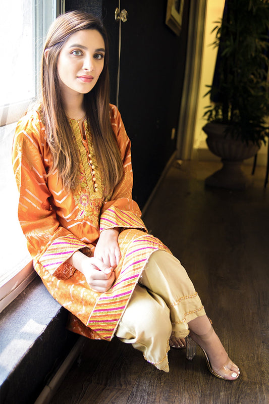 TANGERINE GLOW-2PC (SHIRT & TROUSER)