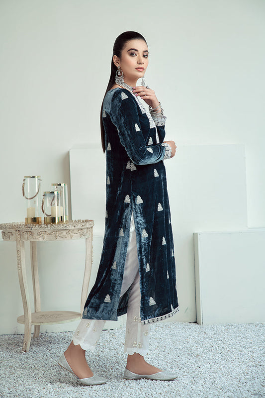 TEAL NOIR-4PC NET EMBROIDERED SUIT