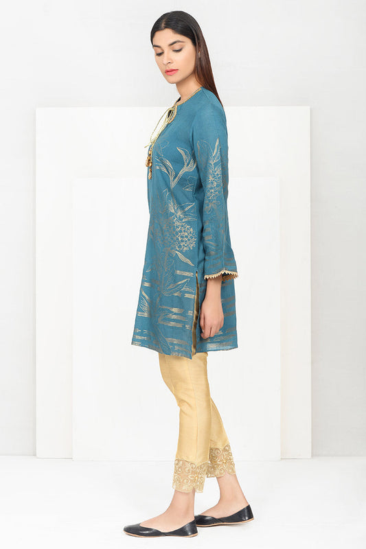 TEAL LATTICE-3PC KHADDAR PRINTED SUIT