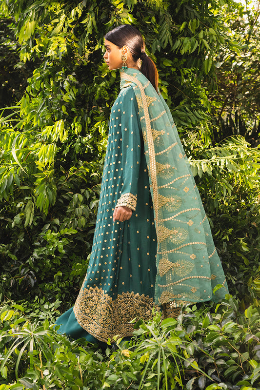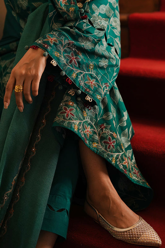 TEAL PROFUSE-3PC EMBROIDERED VELVET SUIT