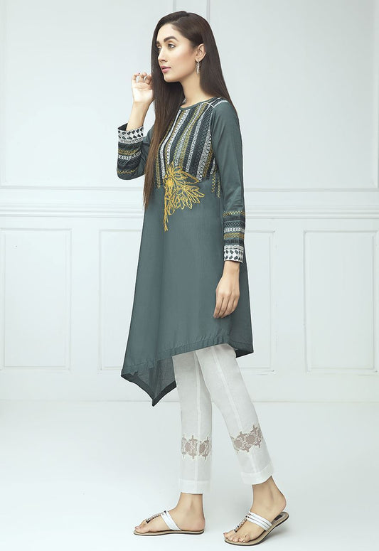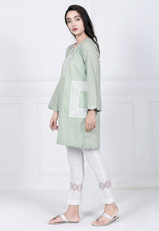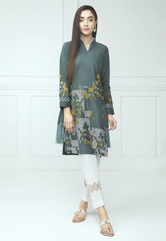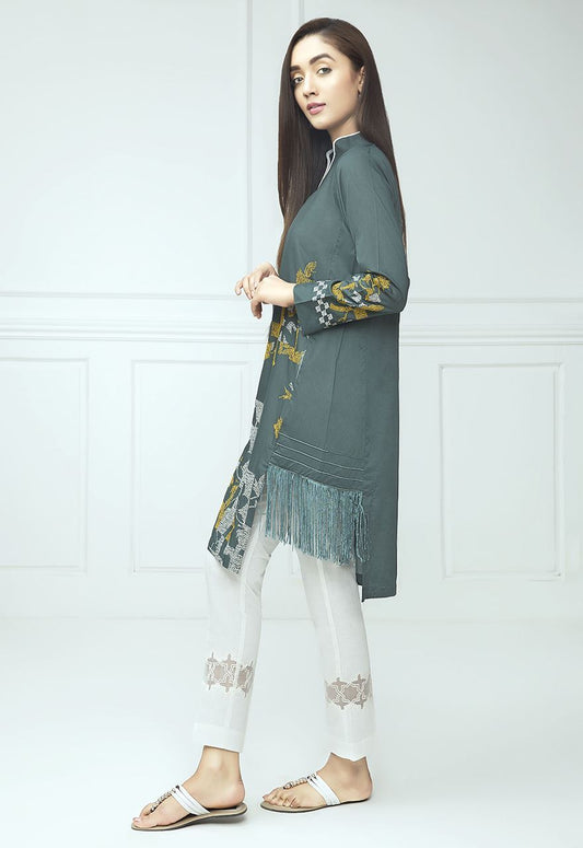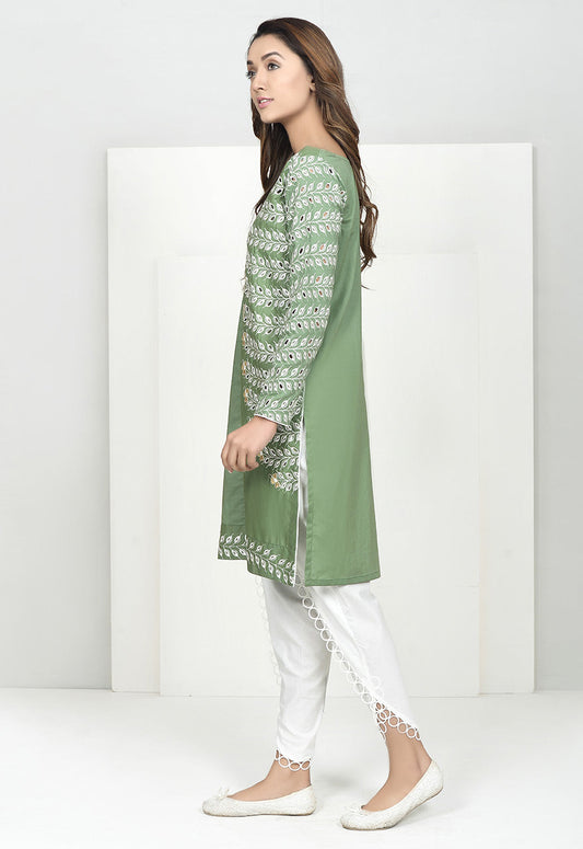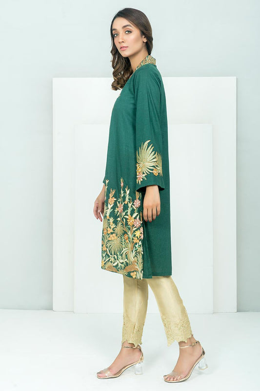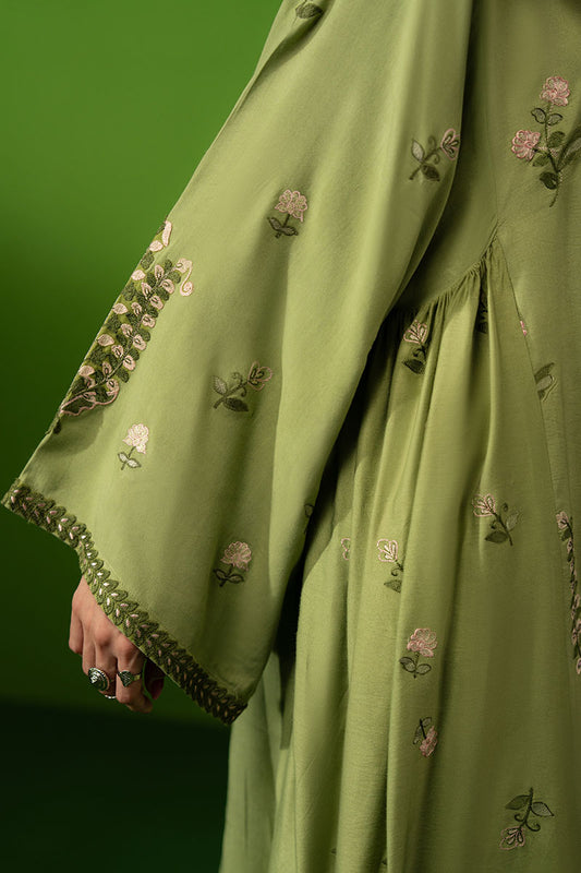 VERDANT PEA EMBROIDERED SHIRT- 3PC (SHAWL)