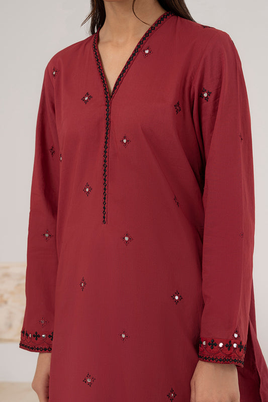 VERMILLION LAWN EMBROIDERED SHIRT