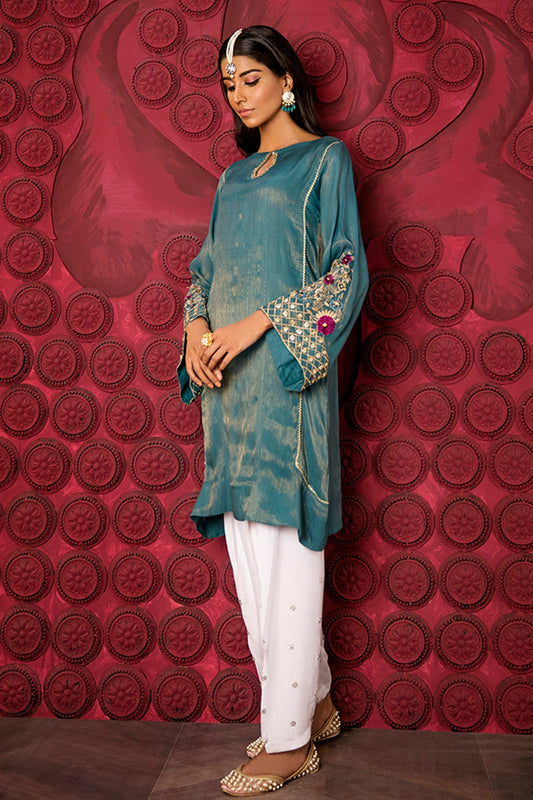 TEAL RASHAM EMBELLISHED SHIRT