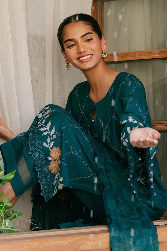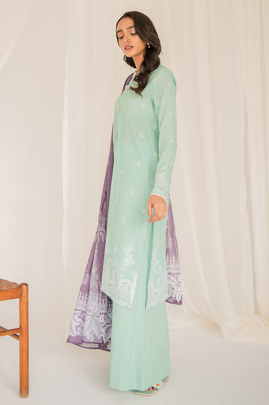 VIBRANT SPRUCE-3PC EMBROIDERED CAMBRIC SUIT