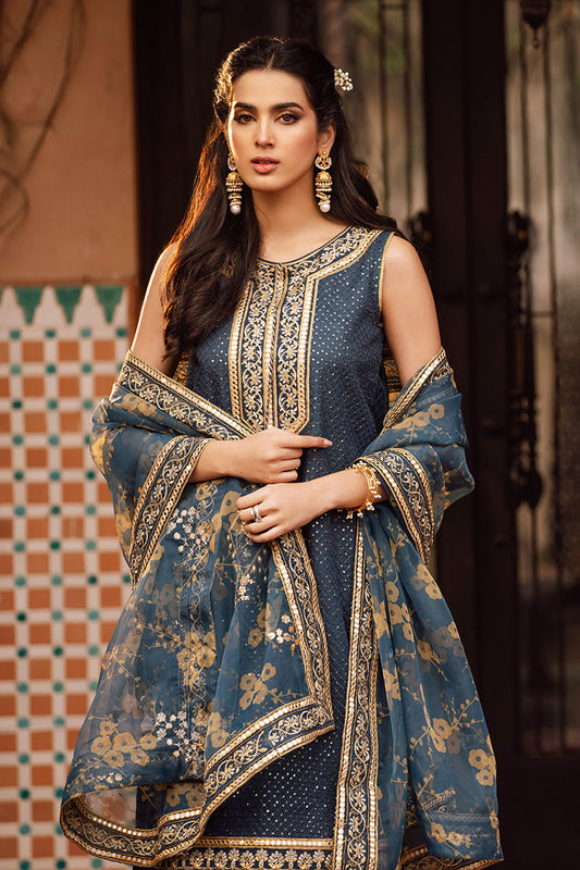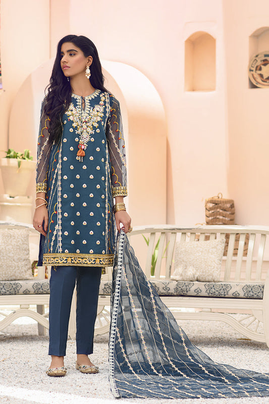 AZURE TRANQUIL-3PC ORGANZA EMBROIDERED PRET