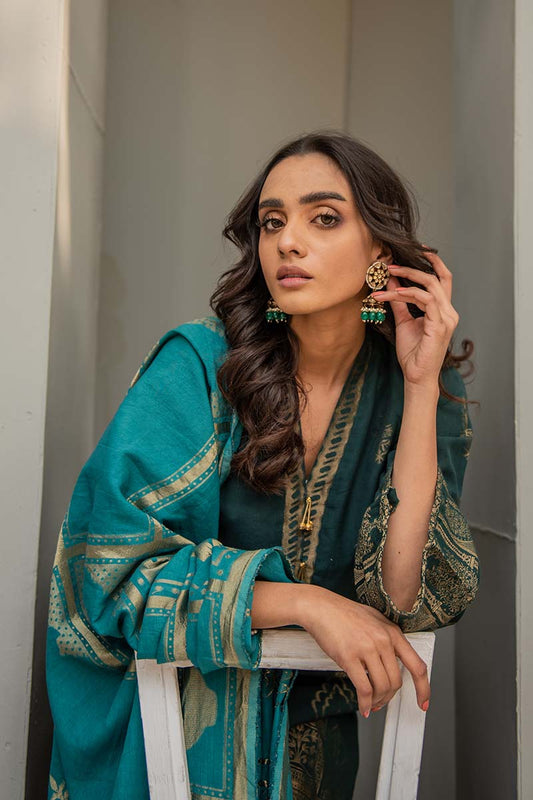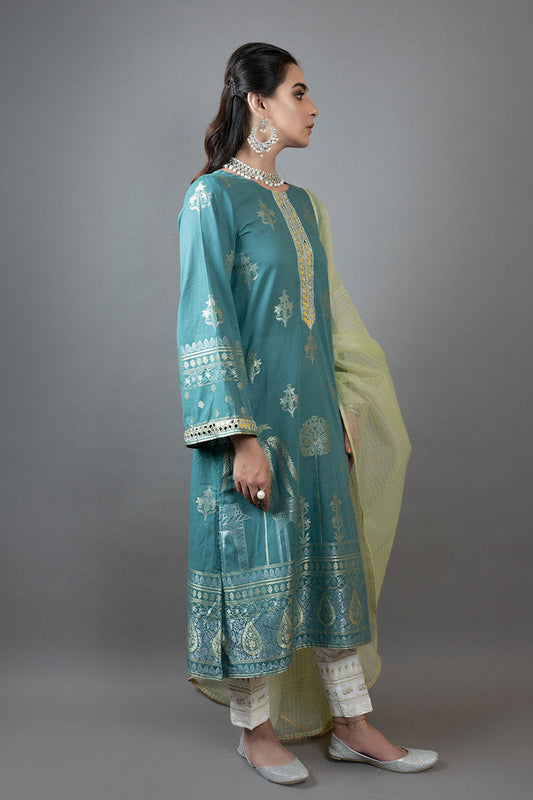 BLOOMING JADE-3PC EMBROIDERED LAWN SUIT