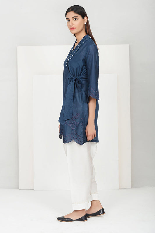 AZURE SPARKLE EMBROIDERED SILK SHIRT