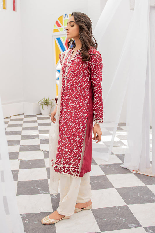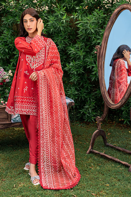 CRIMSON RED-3PC PRINTED LAWN SUIT