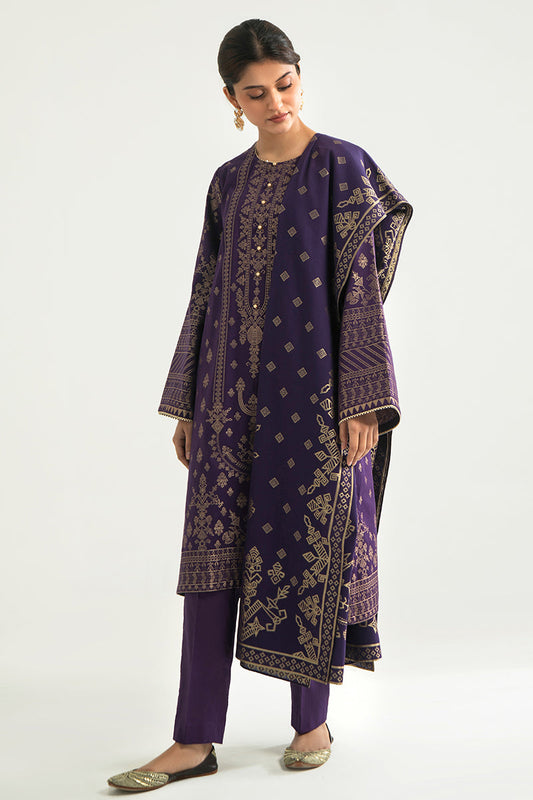 ETHNIC ERA-B-3PC COTTON JACQUARD SUIT