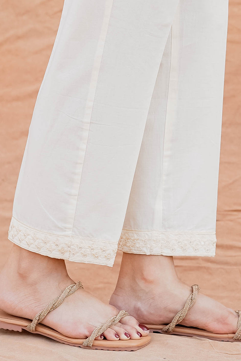 SEQUIN EMBROIDERED STRAIGHT FITTED CAMBRIC PANTS