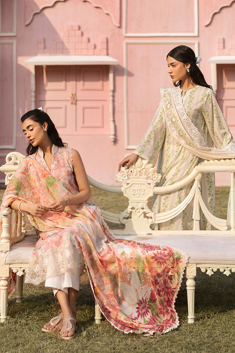 This ALMOND PINK-3PC PRINTED LAWN SUIT is a perfect blend of elegance and comfort. The lawn printed shirt features 40" and 100" embroidered patti for a stylish touch. The cambric dyed trouser adds to the overall comfort, while the silk printed dupatta completes the look with a luxurious feel.
