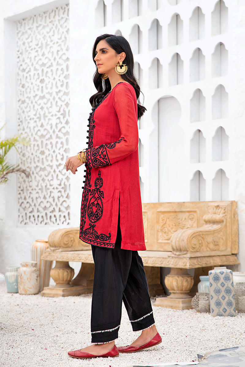 Embroidered with the Classic Paisley Motif Merged with Floral Details in the Middle, Amarnath is an Exquisite Ready To Wear Kurta that can be paired with a Wide-Legged Bottom or Shalwar