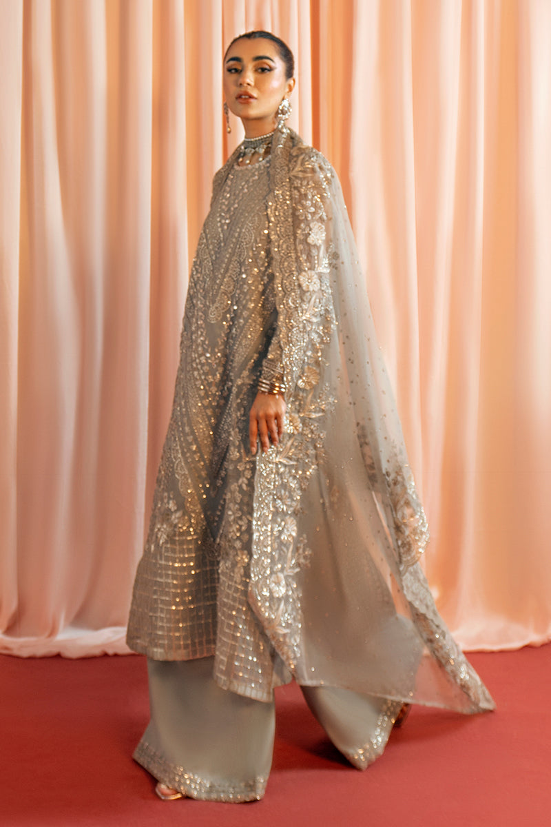 - A spellbinding vision of absolute beauty exists in Amber Rush. It's a decadent organza grey canvas alive with exquisite embroidery and crystal drop detailing. It comes paired with an equally resplendent dupatta and raw silk sharara pants to get you sorted for the next wedding reception your going to