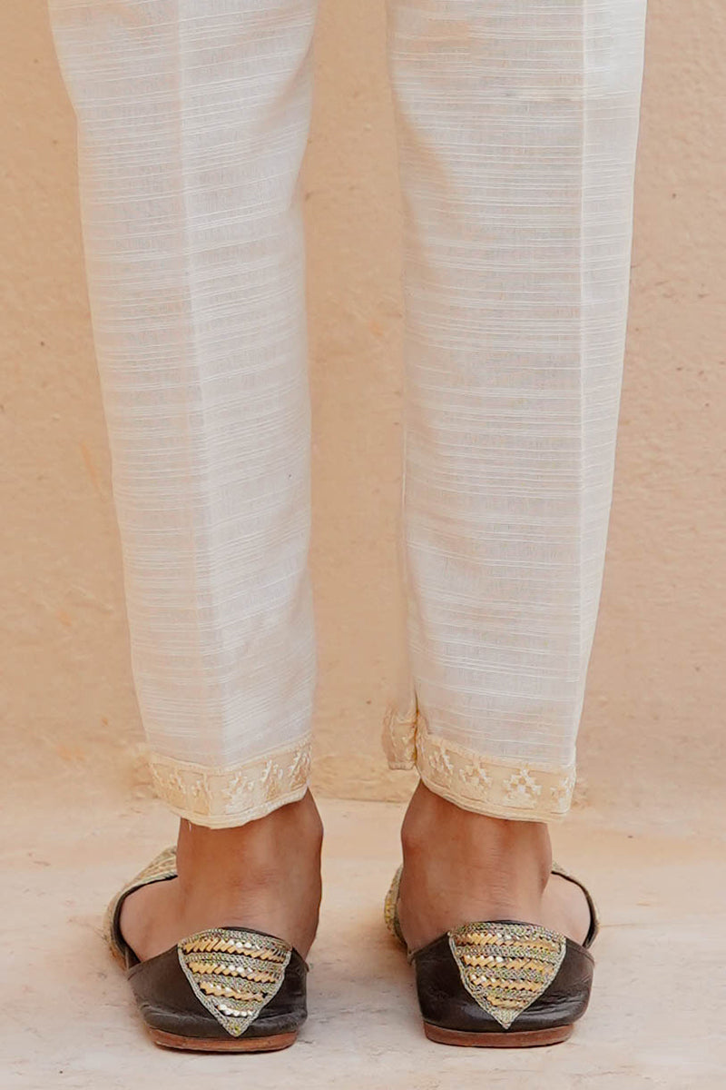 KHADDAR EMBROIDERED STRAIGHT FITTED PANTS