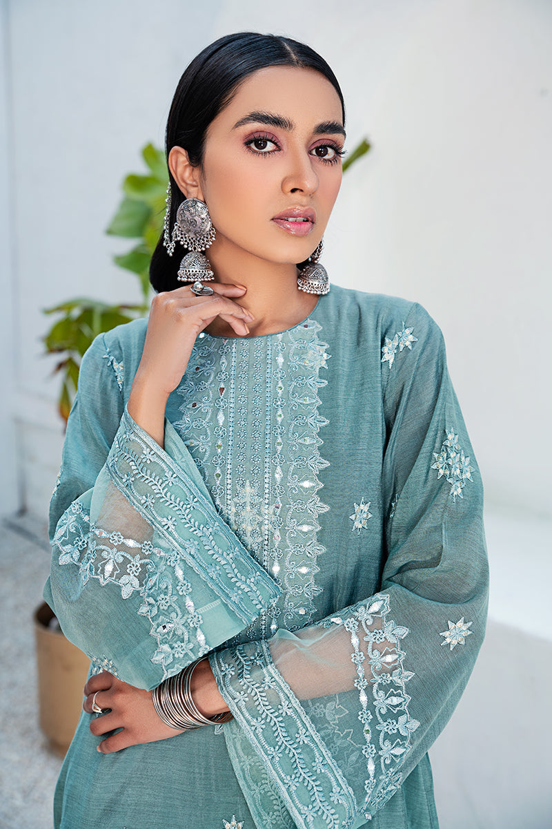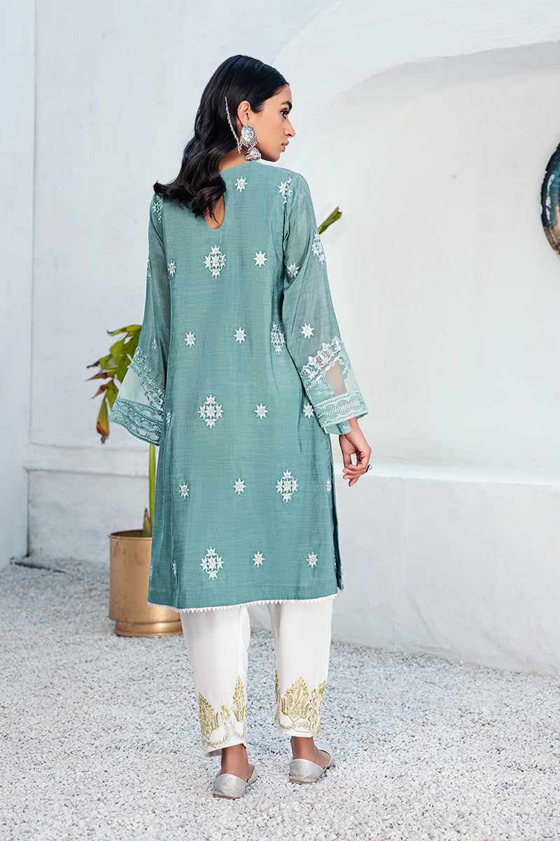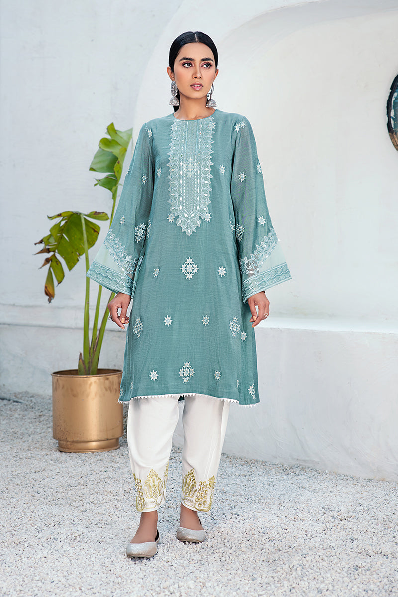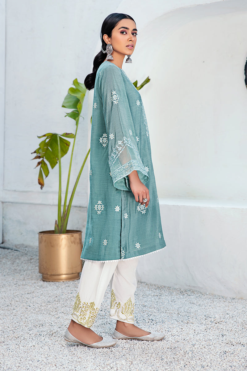 This Luxuriant Tiffany Blue Kurta in Viscose Net is Set to take Your Outfit Game up a Notch. Featuring Refined Details all over the Ensemble, Aqua Floral Looks Best with an Embellished Trouser