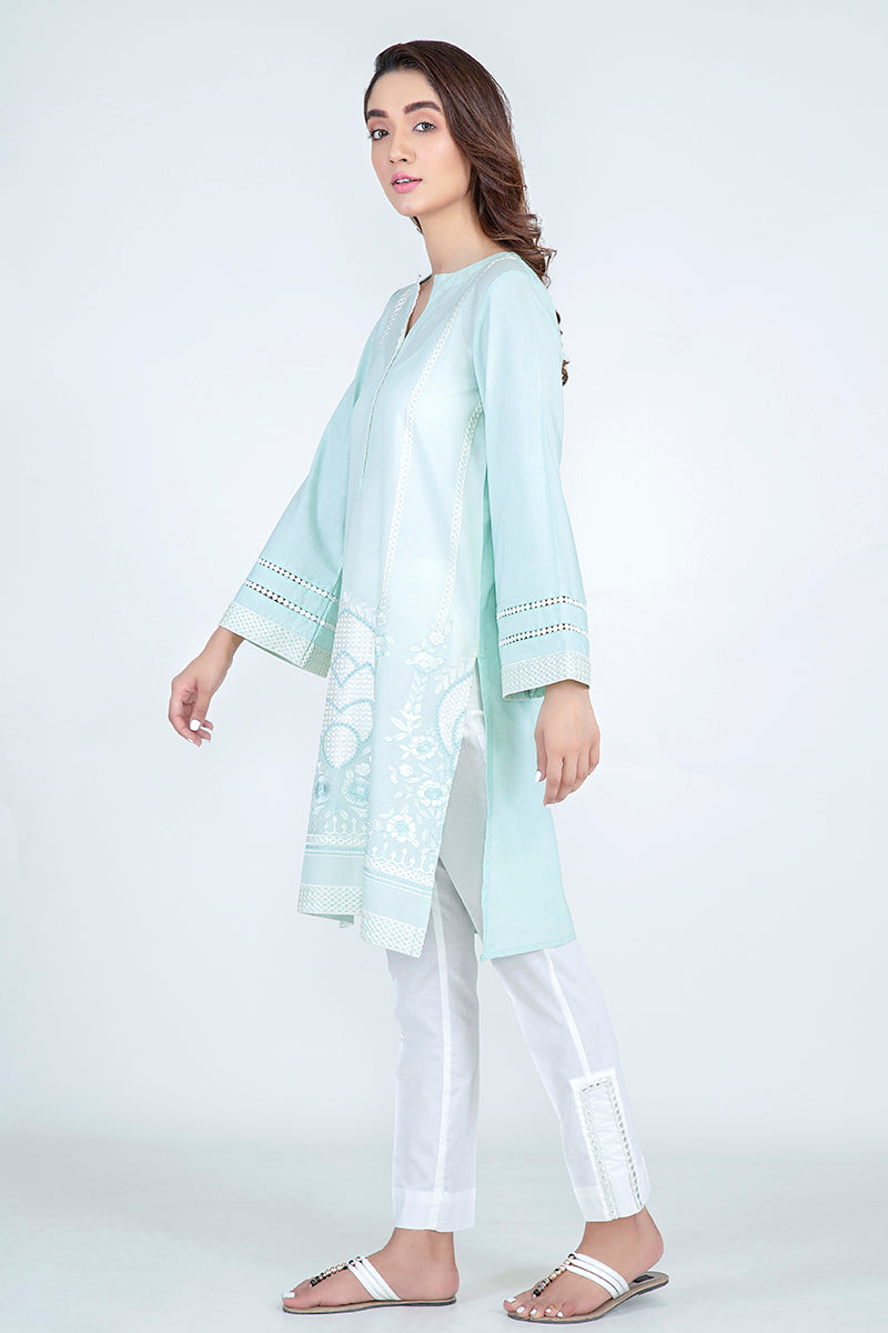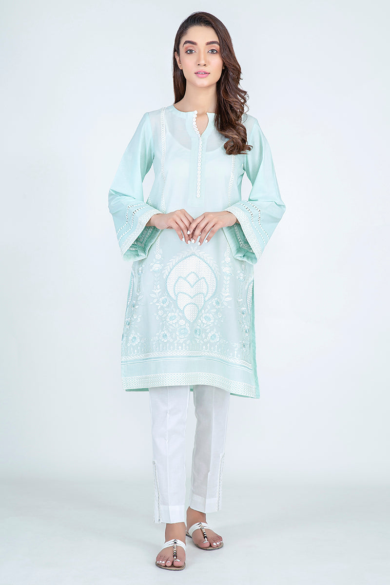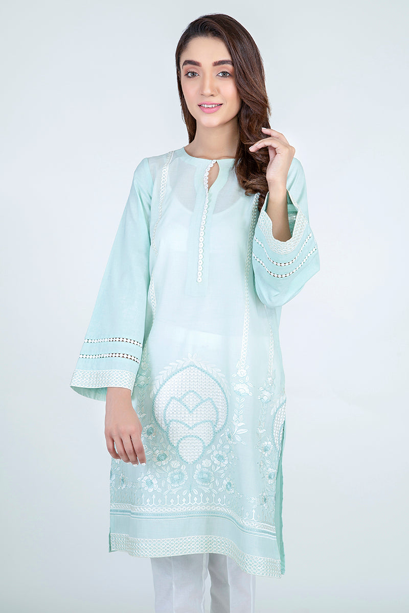 UNSTITCHED 2 PCS: DYED EMBROIDERED COTTON CAMBRIC SHIRT FRONT, DYED COTTON CAMBRIC BACK & SLEEVES, AND DYED CAMBRIC TROUSER