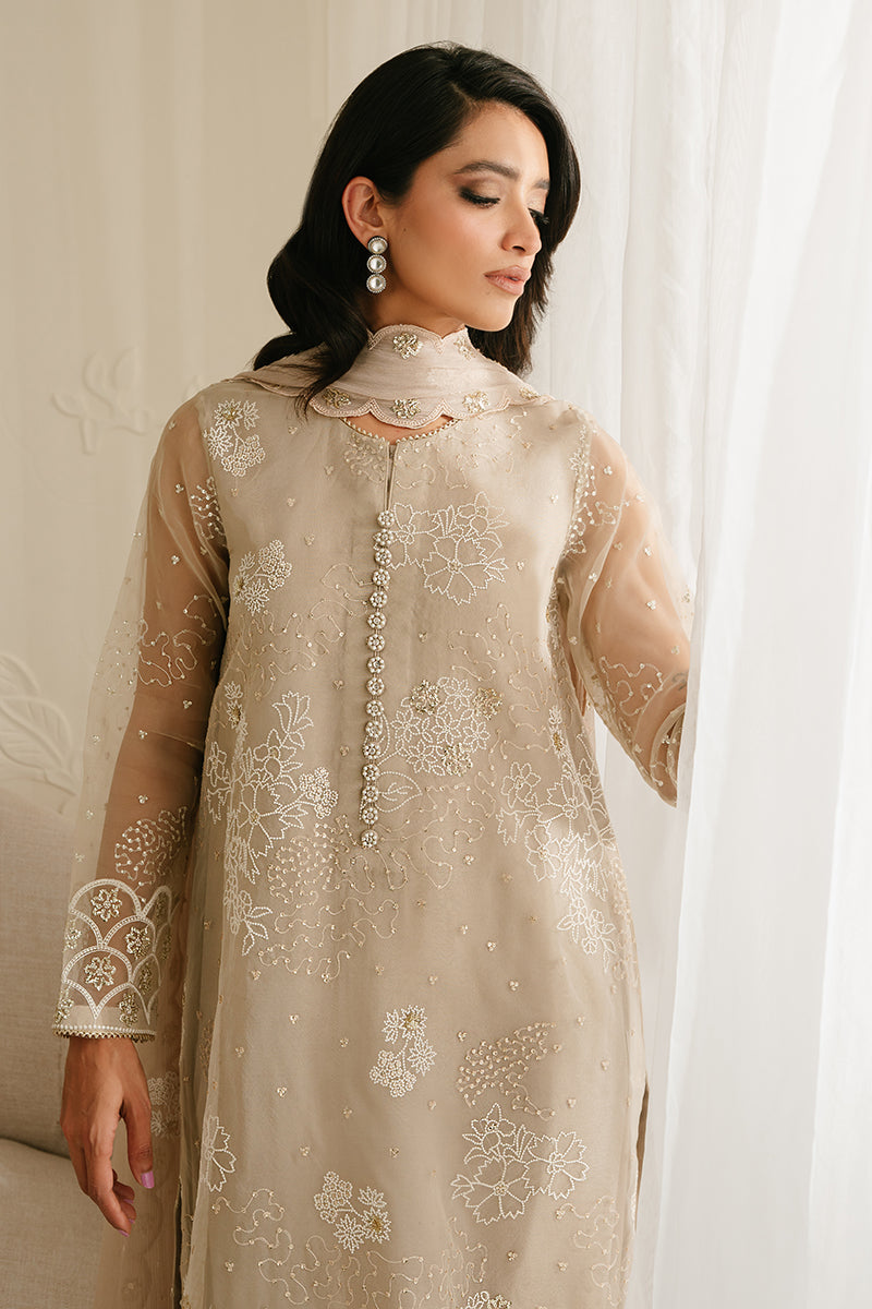 ASH GRAY-4PC ORGANZA EMBROIDERED SUIT