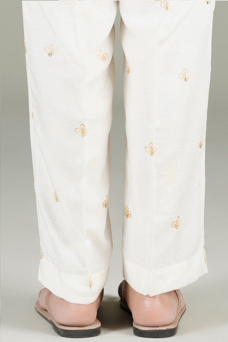 STRAIGHT FITTED LINEN EMBROIDERED PANTS