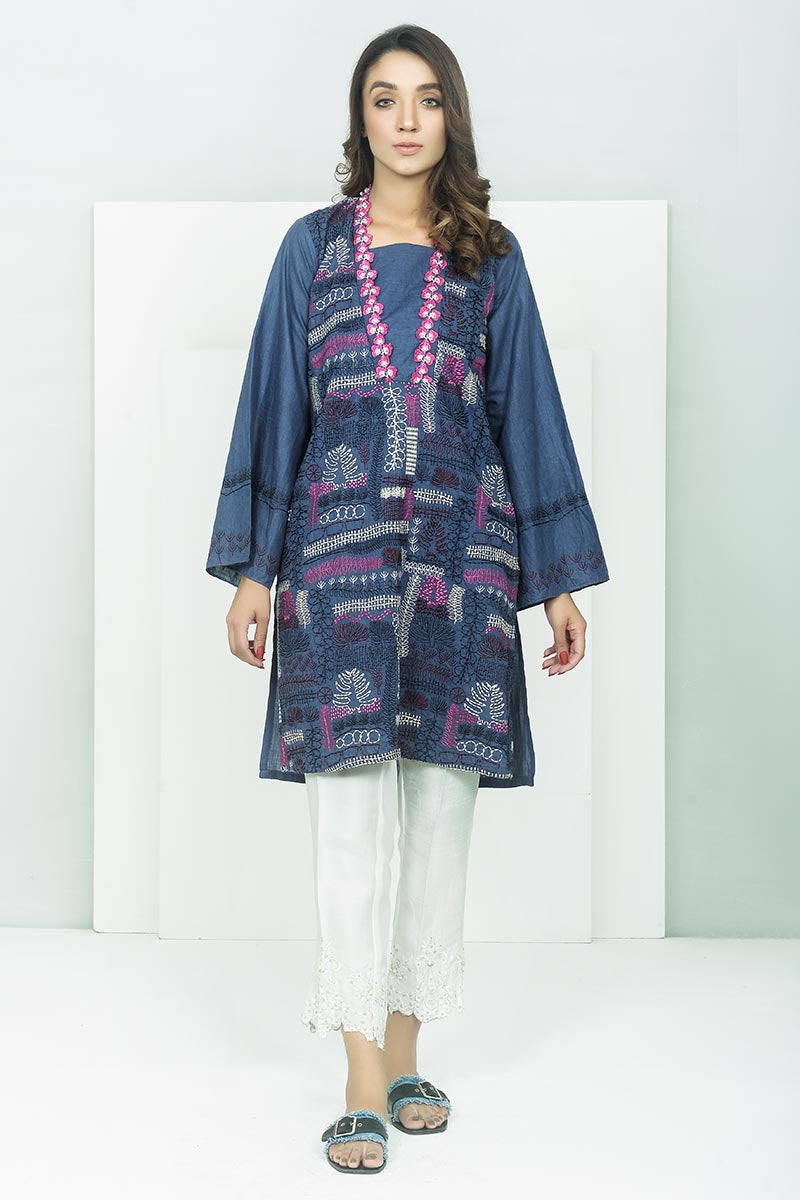 100% COTTON SATIN EMBROIDERED READY TO WEAR SHIRT