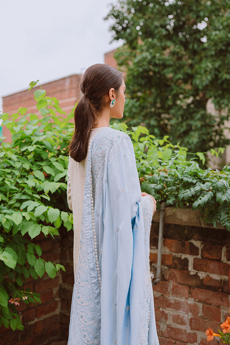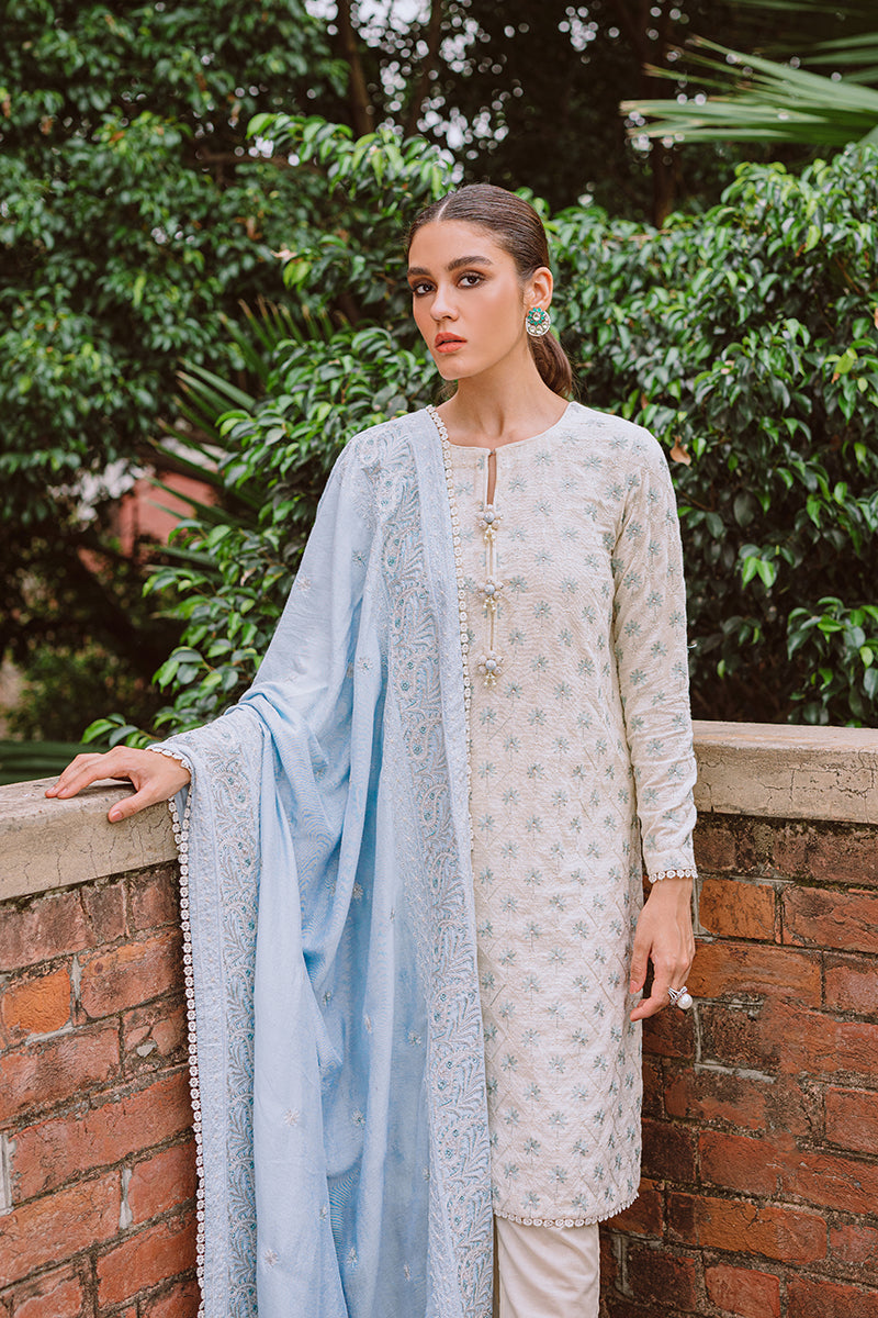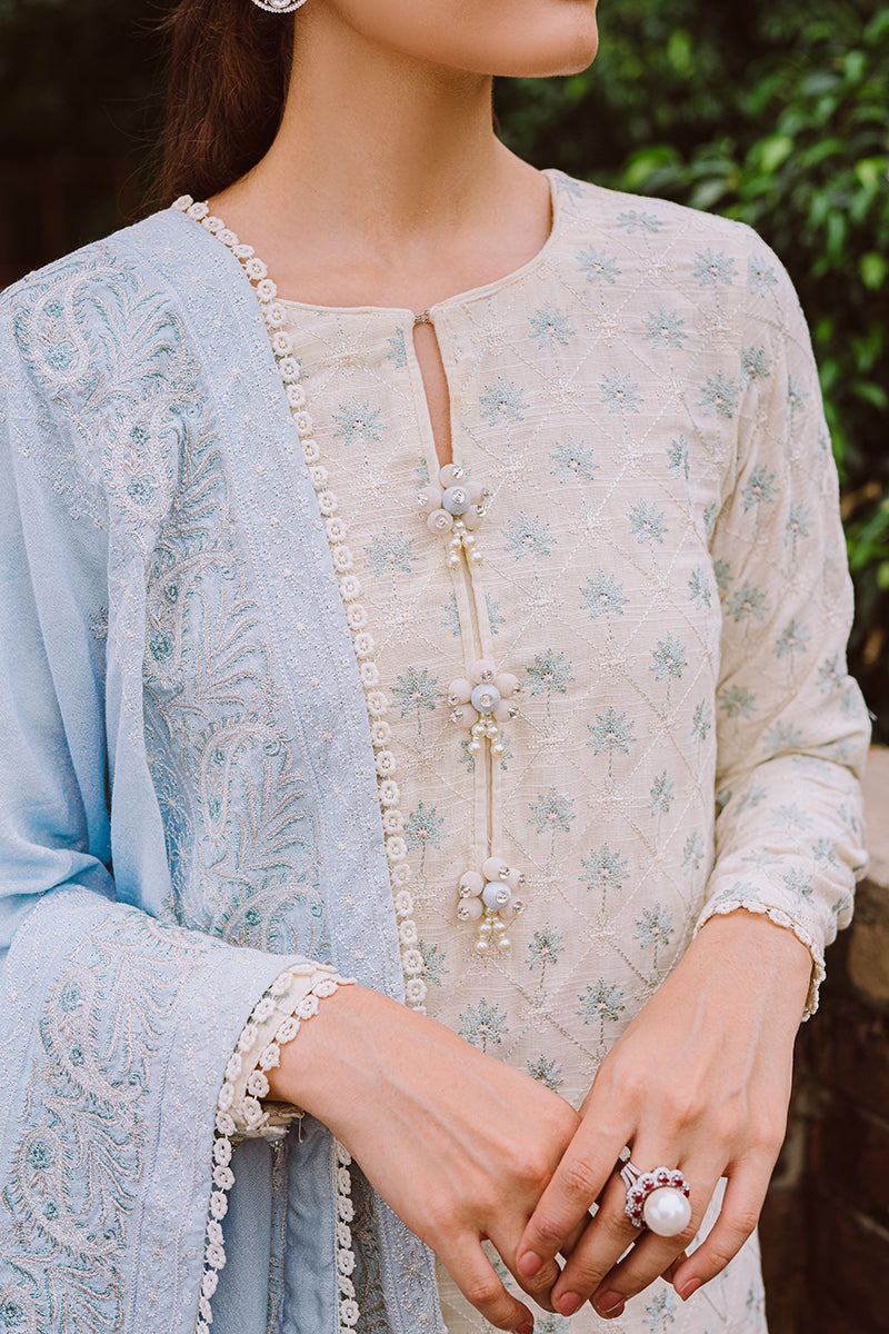 Crafted with Attention to Detail, Astrid is a Two-Piece Outfit Featuring an Embroidered Shirt with Hand Embellished Buttons and a Contrasting Embroidered Shawl. Pair with Cigarette Pants