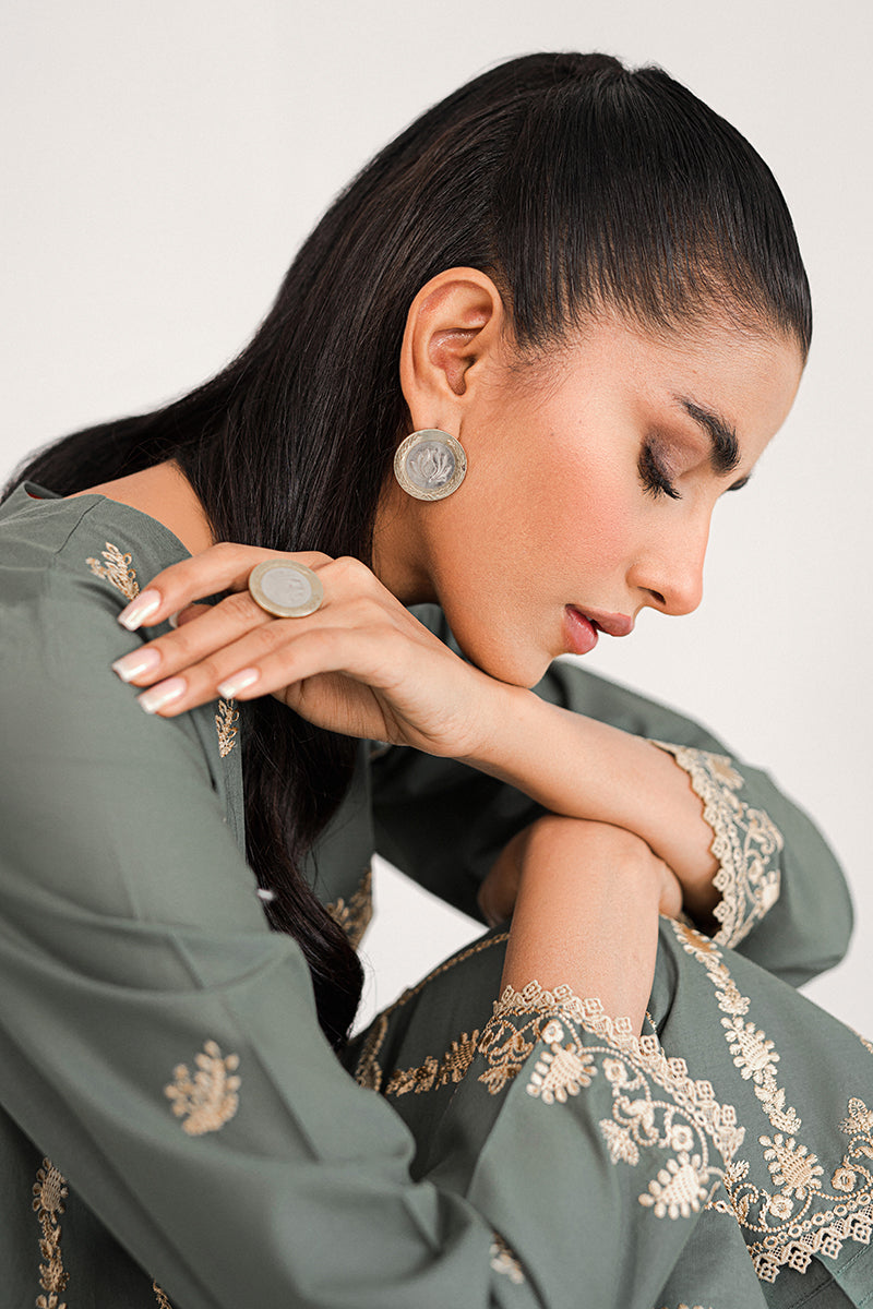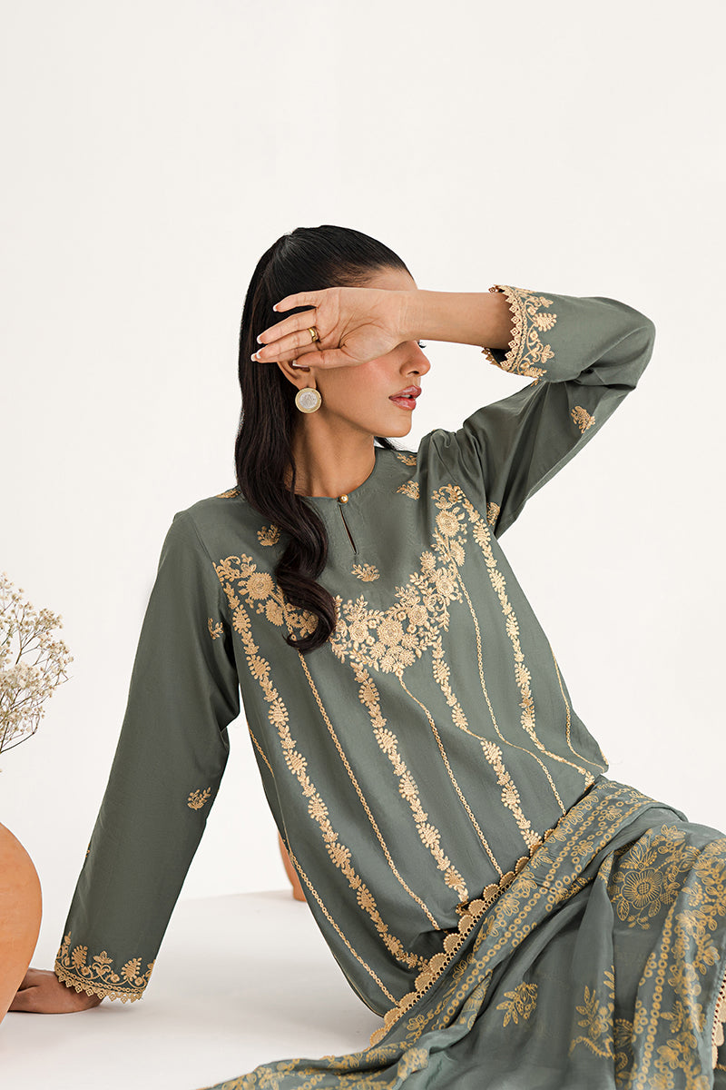 AURIC SAGE-3PC EMBROIDERED LAWN SUIT