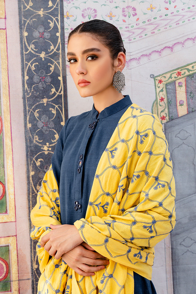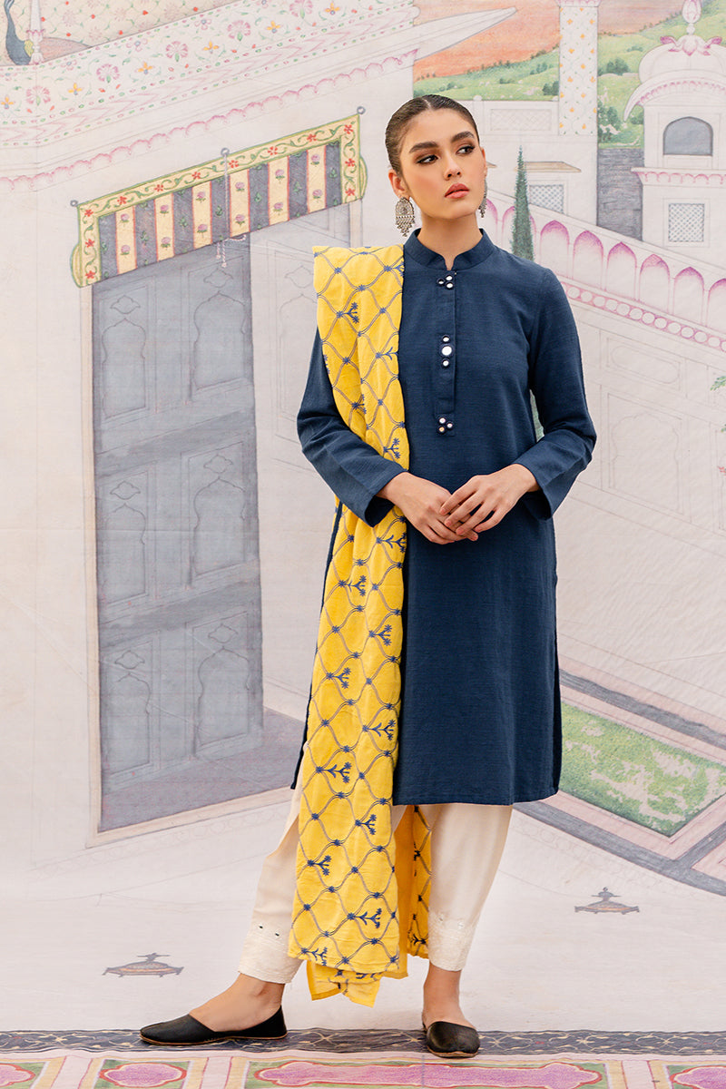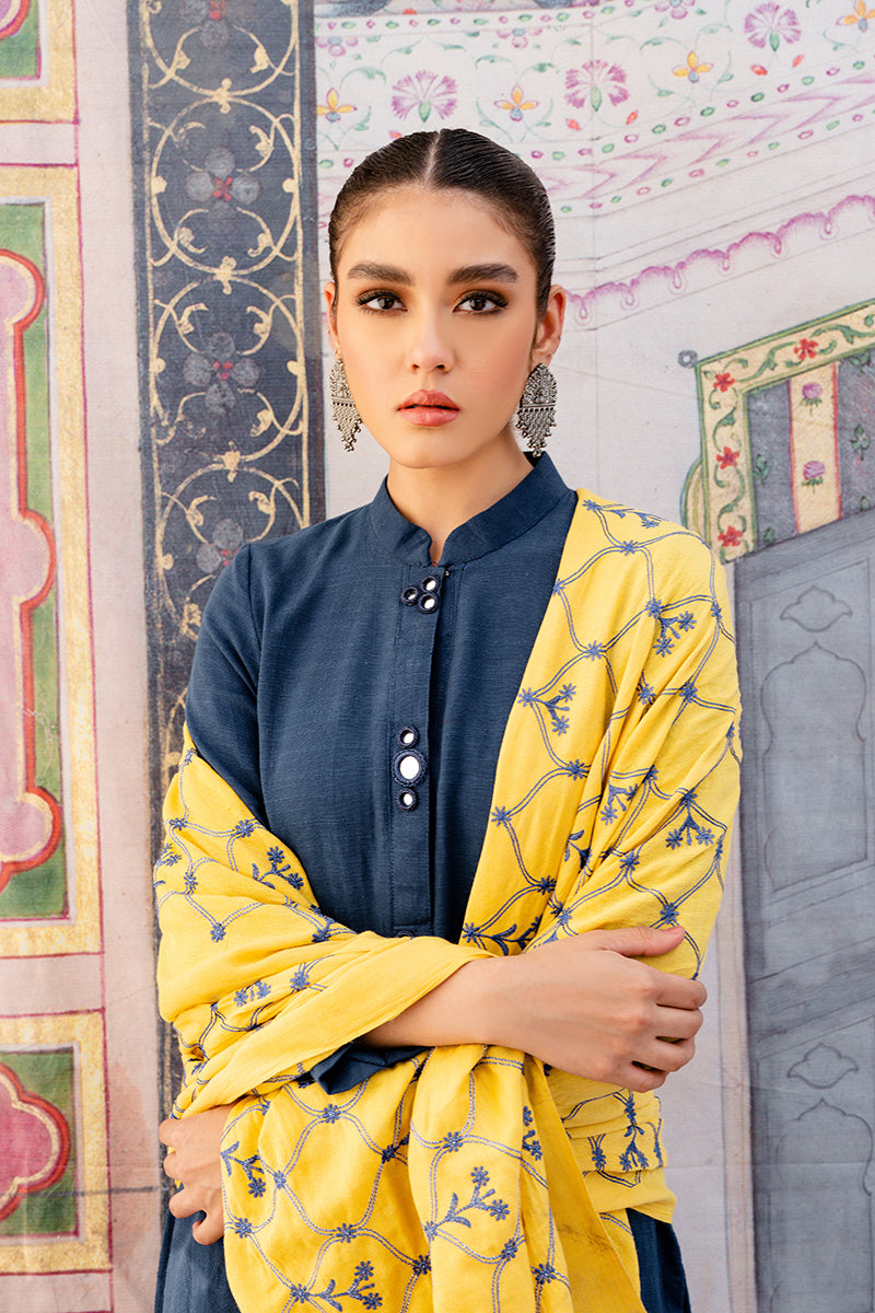 100% Khaddar Embellished Ready to Wear Shirt with Embroidered Shawl