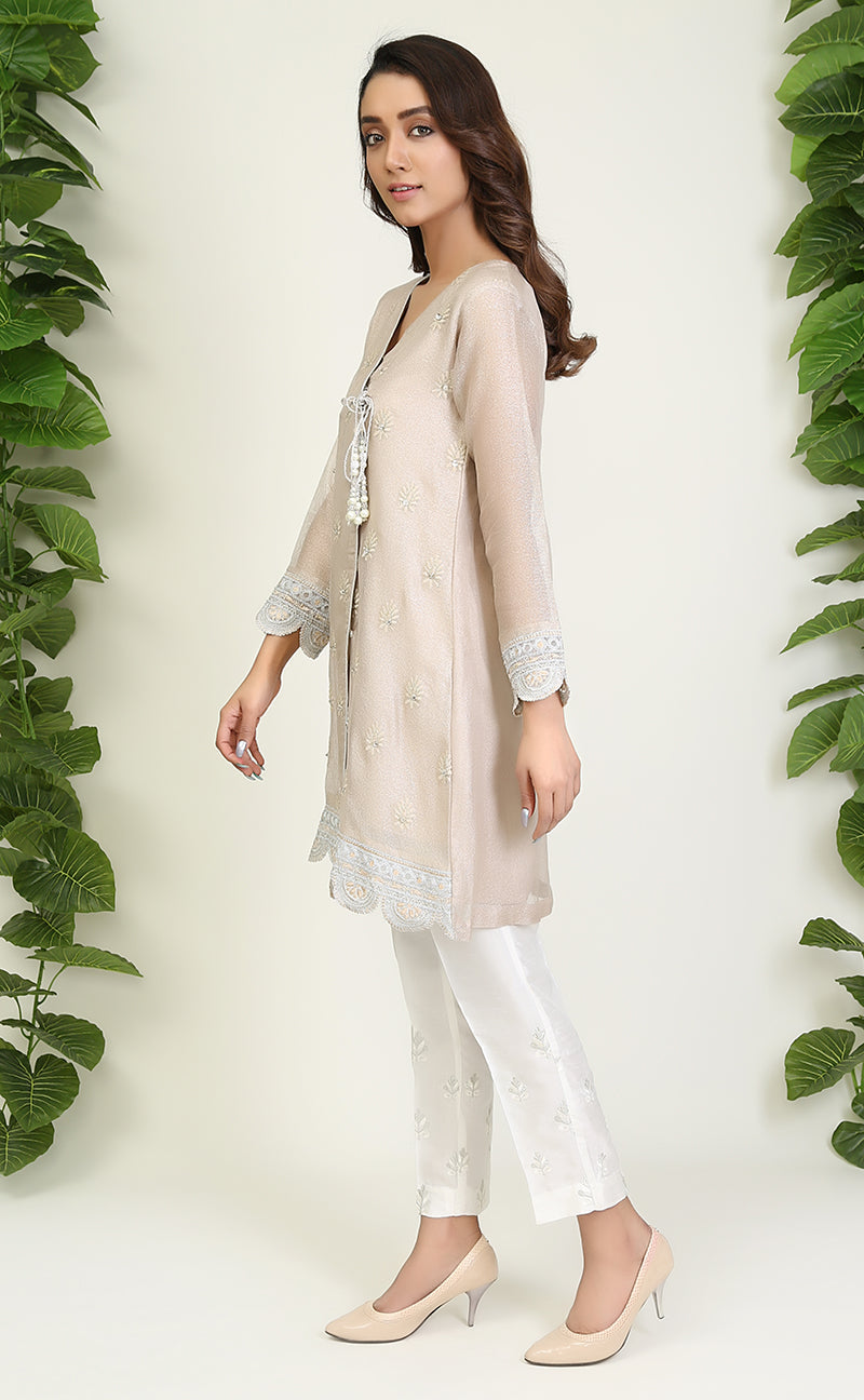 LUXURY PRET - EMBELLISHED CHIFFON SILK TUNIC (slip Included)