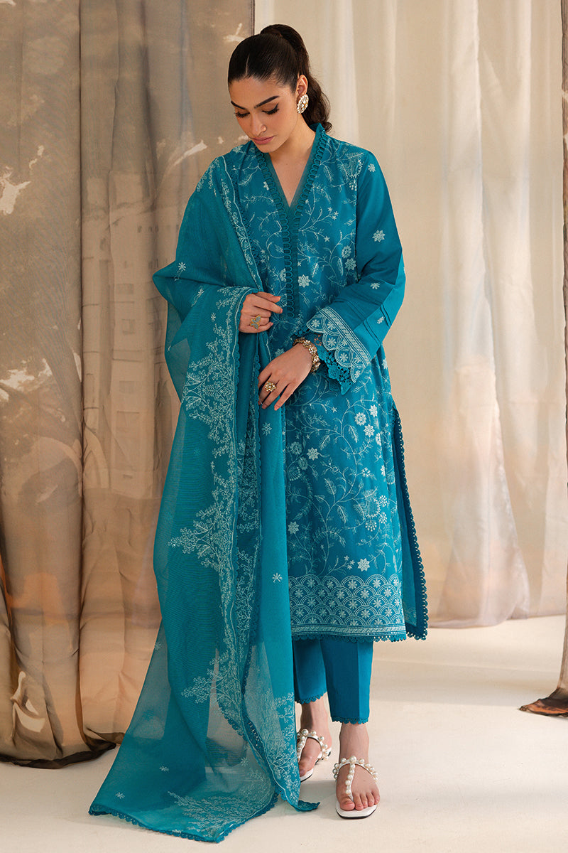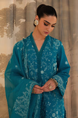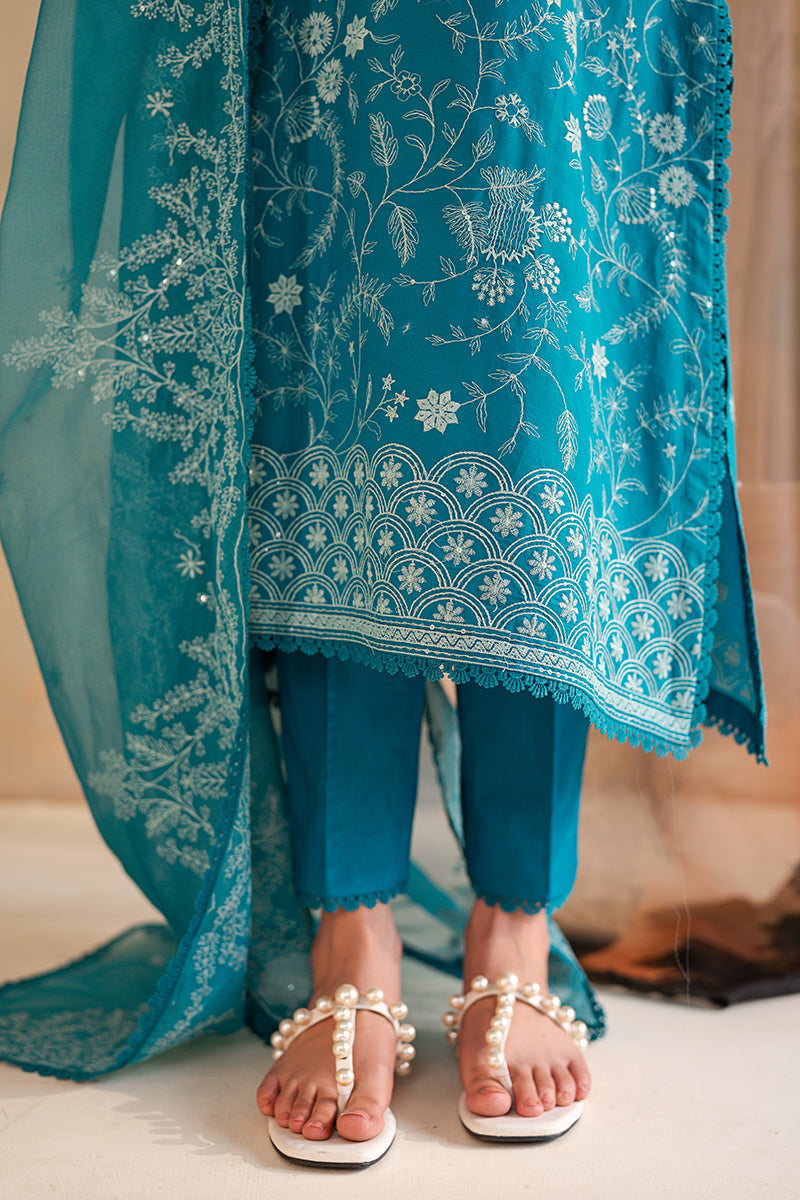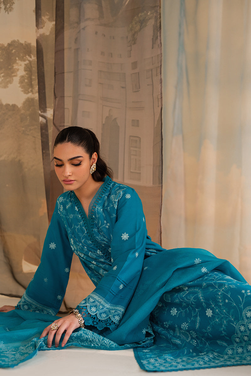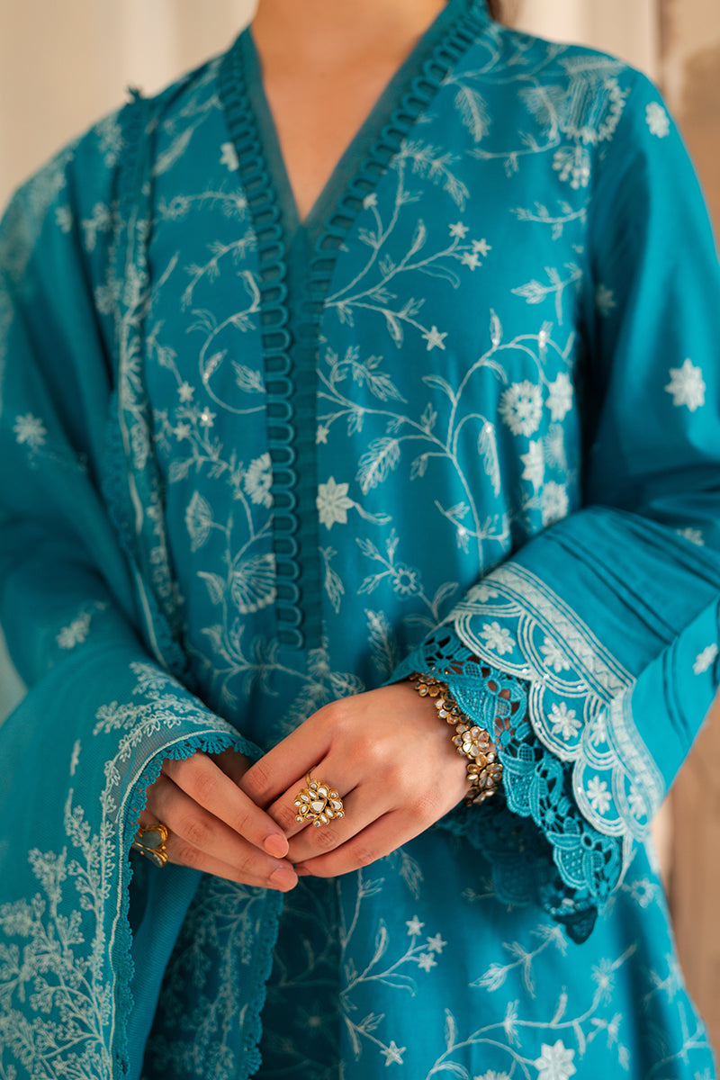 THIS BERYL BLISS-3PC LAWN EMBROIDERED SUIT CONSISTS OF A LAWN EMBROIDERED SHIRT WITH FRONT, BACK AND SLEEVES, A CAMBRIC DYED TROUSER, AS WELL AS A NET EMBROIDERED DUPATTA. THE HIGH-QUALITY FABRIC MAKES THIS SUIT EXCEPTIONAL WEAR FOR WARM SUMMER DAYS!