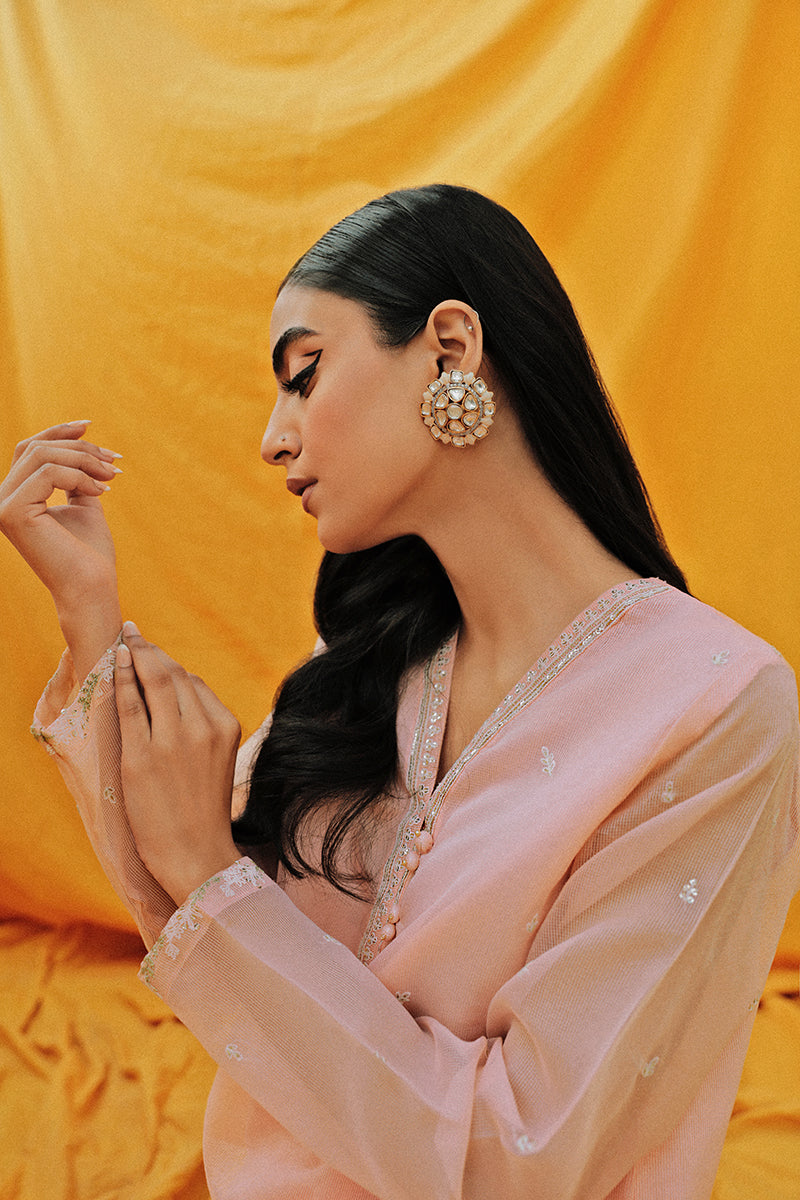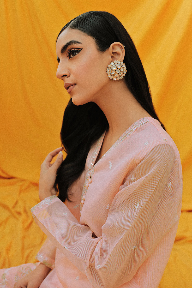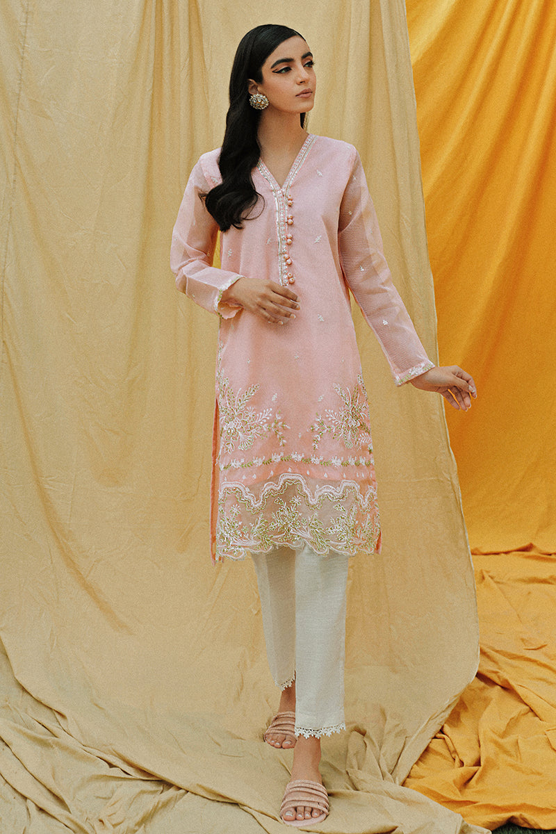 - Blooming Terlis is a semiformal light pink net shirt. Pair it with Cross Stitch's Clairre-2 sandals and matching studs to serve the looks