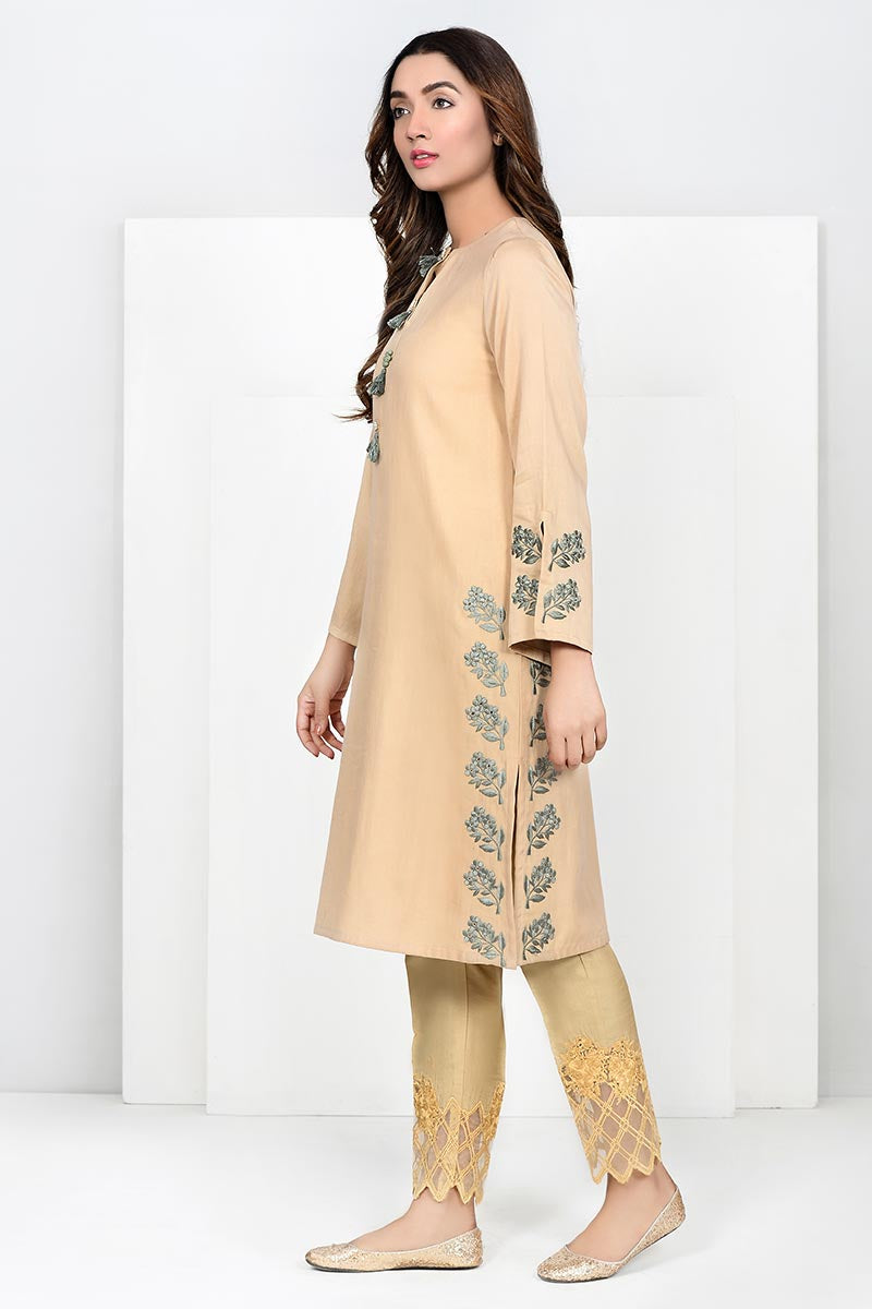 COTTON SATIN EMBROIDERED READY TO WEAR SHIRT