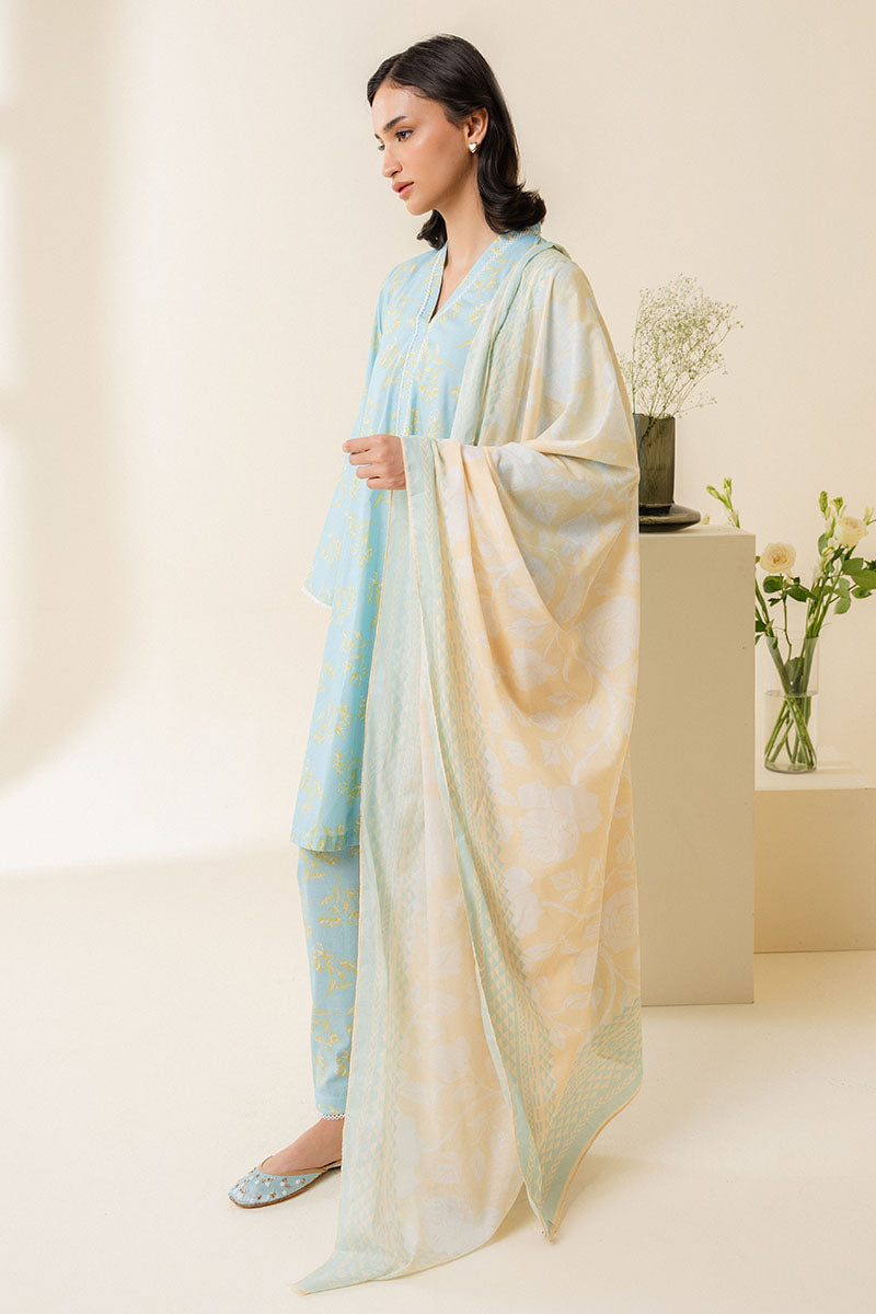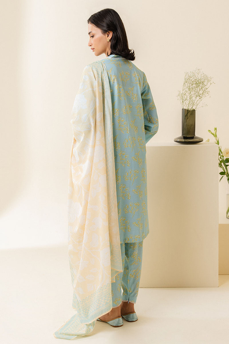 BLUE FOLIAGE-3 PC PRINTED LAWN SUIT