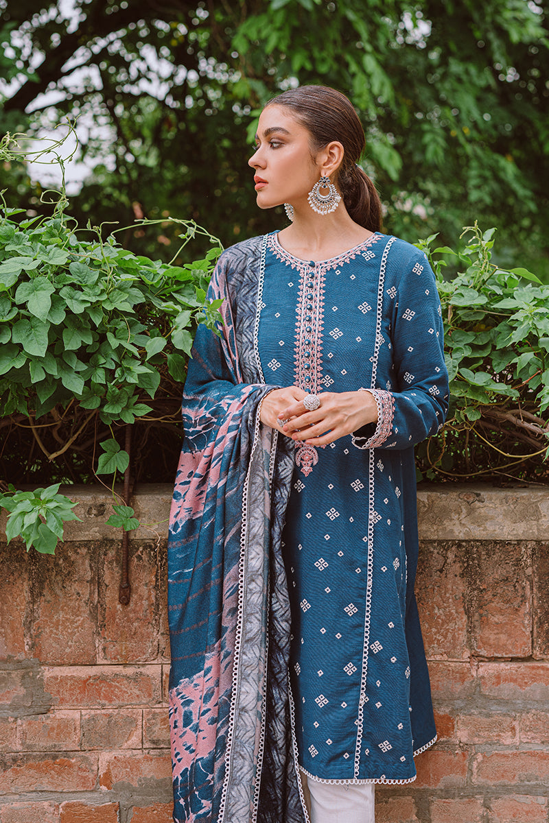 Blue Punch Features an Enhanced Neckline with Hand Embellished Buttons. The Shirt Comes with A Tie & Die Digital Printed Dupatta And Can Be Styled With Traditional Chand Balis and a Sleek Ponytail
