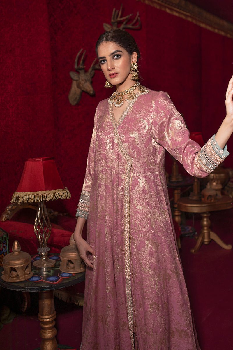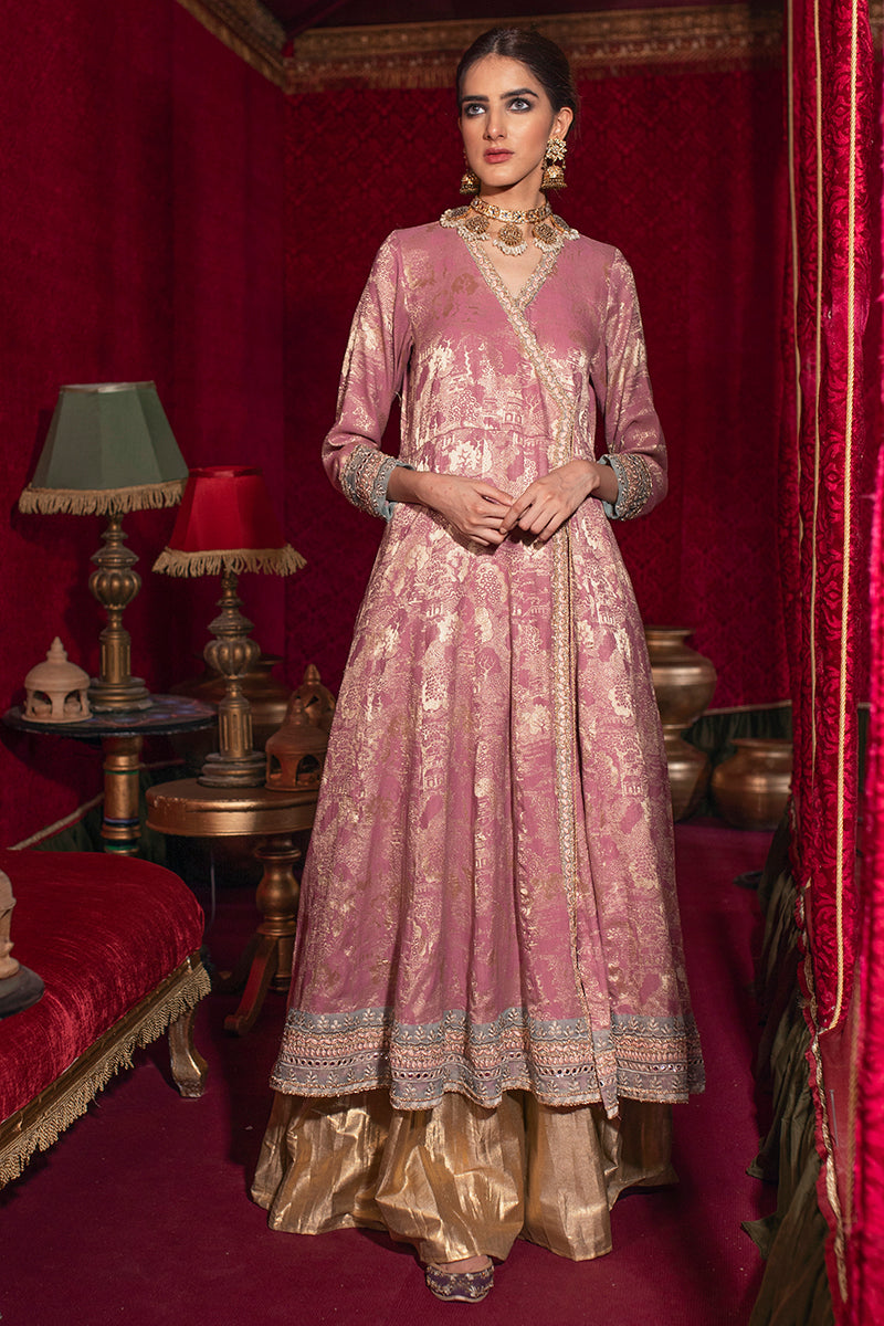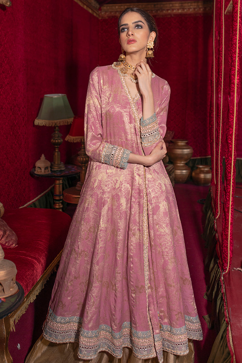Lawn Jacquard Angrakha Shirt with Faux Mirror Embroidered Borders.