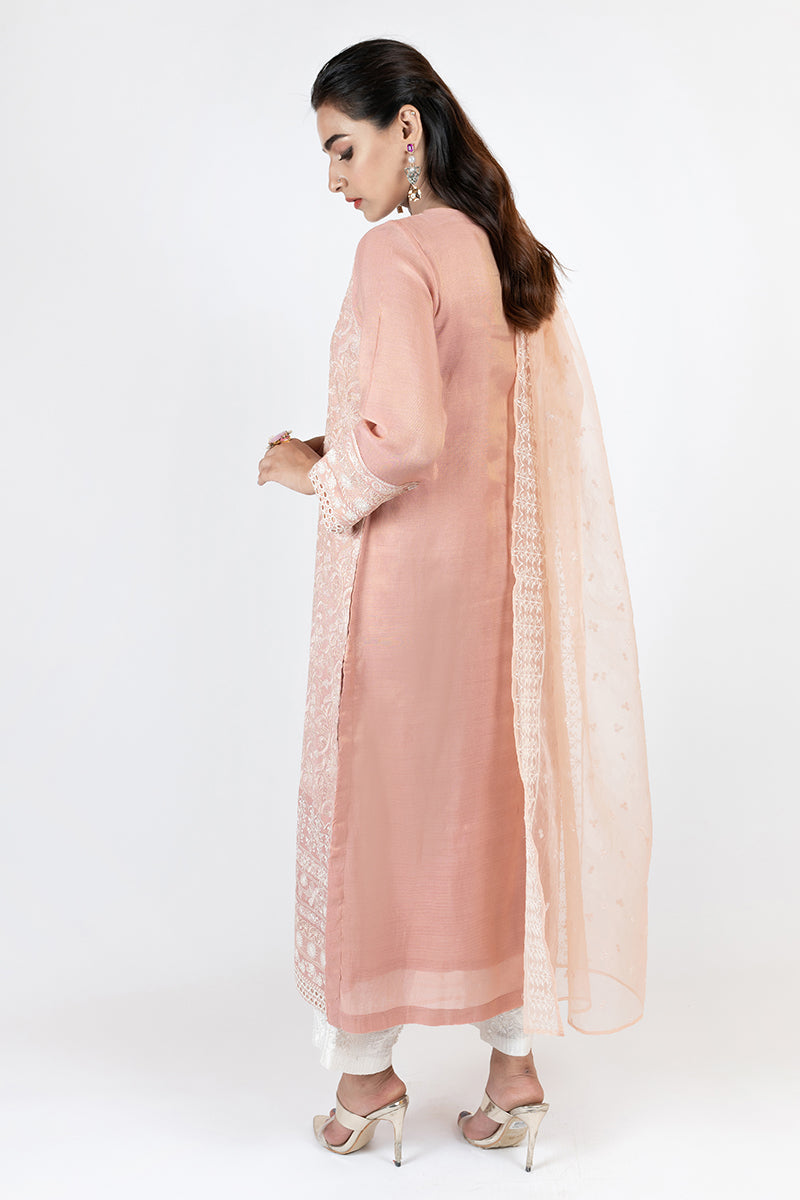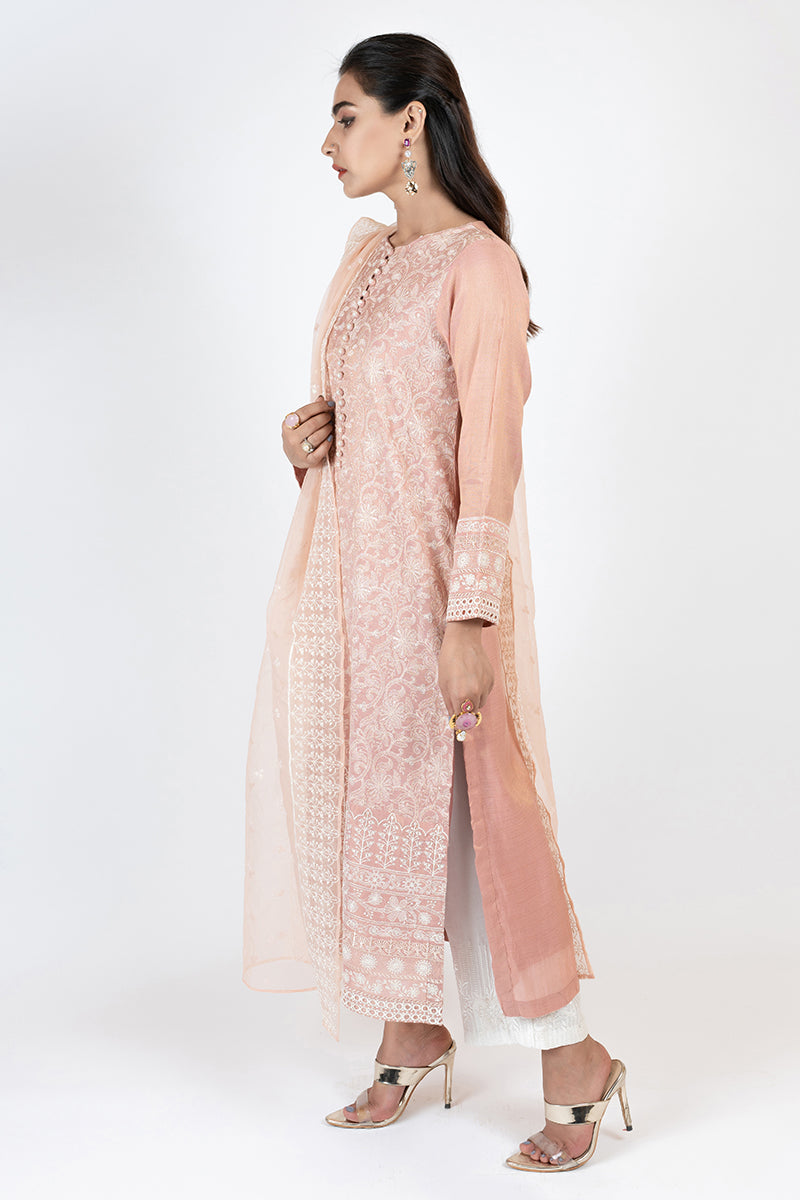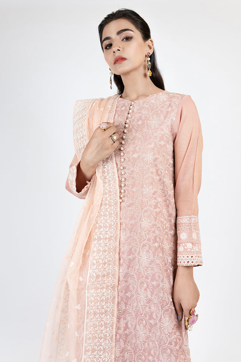 2 PC LUXURY PRET: - EMBELLISHED MISSOURI SILK TUNIC (slip Included) and Dupatta