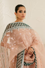 - Elevate your wardrobe with the BRITTANY ROSE-4PC ORGANZA EMBROIDERED SUIT. The ensemble includes a stylish organza embroidered shirt with embroidered neckline, front, back, and sleeve pattis. The accompanying dyed silk slip, silk dyed trousers, and organza embroidered dupatta complete this luxurious look. Enjoy timeless elegance and sophisticated styling with this eye-catching suit.